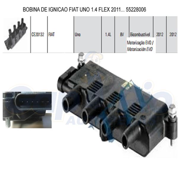 Bobina de Ignição Fiat Uno 1.4 8v 2010/2011
