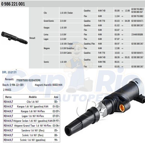 Bobina de Ignição Renault Clio Scenic Livina Kangoo Logan Megane Sandero