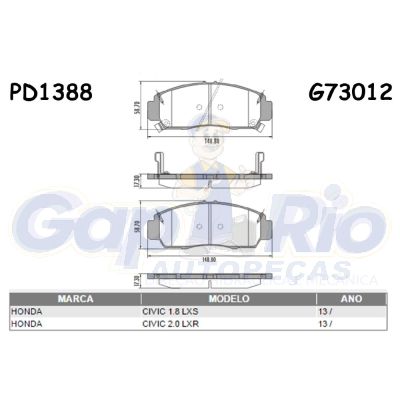 Pastilha de Freio Dianteira Honda New Civic, Civic