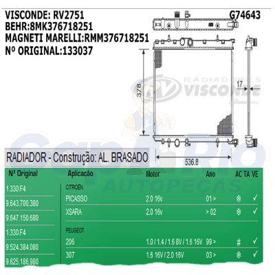 Radiador Citroen Picasso Xsara Peugeot 206 307