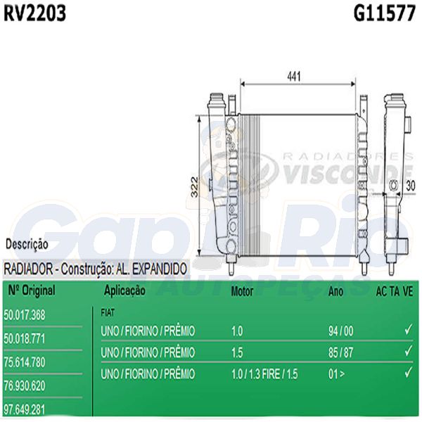 Radiador Fiat Uno Mille Fire Fiorino Premio