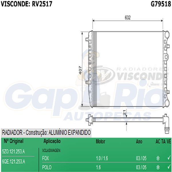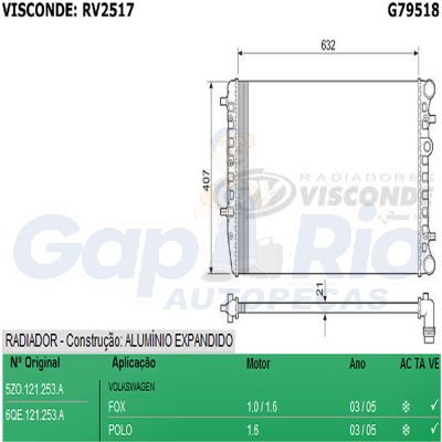 Radiador VW Fox 1.0/1.6 Polo 03/05 c/ ar