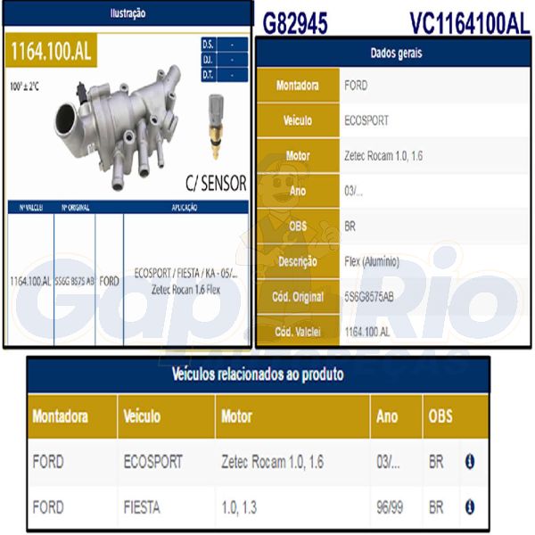 Válvula Termostática Ford Fiesta Ecosport Ka 05/... Zetec Rocam 1.6 flex